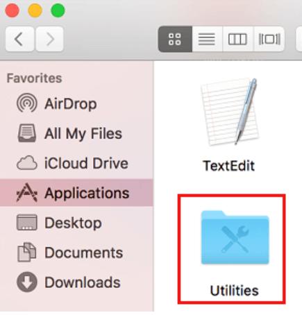 4. After selecting Applications from the left-side menu in the search box, slide down to choose Utilities.