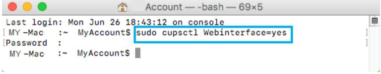 7. You may use any Mac browser to visit CUPS after this command has been properly performed.