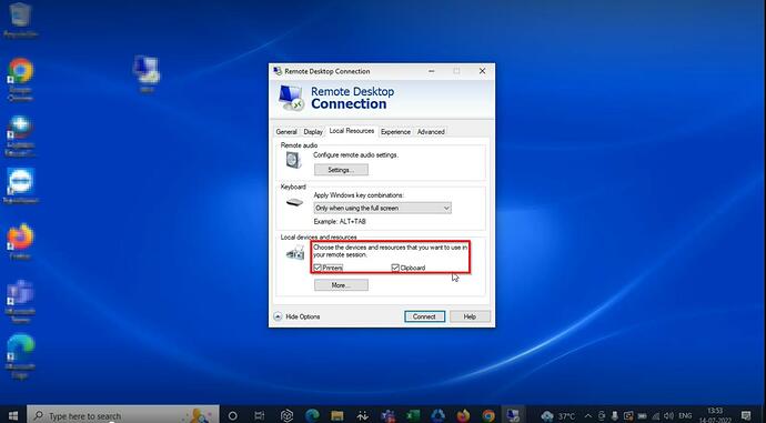 Follow the steps mentioned below to enable redirection in Windows (RDP):
