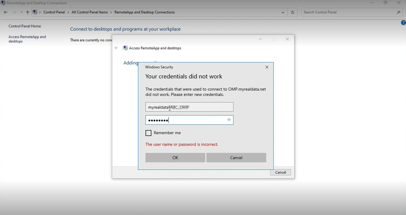 5. Enter your credentials to finish publishing remote apps on your local computer.
